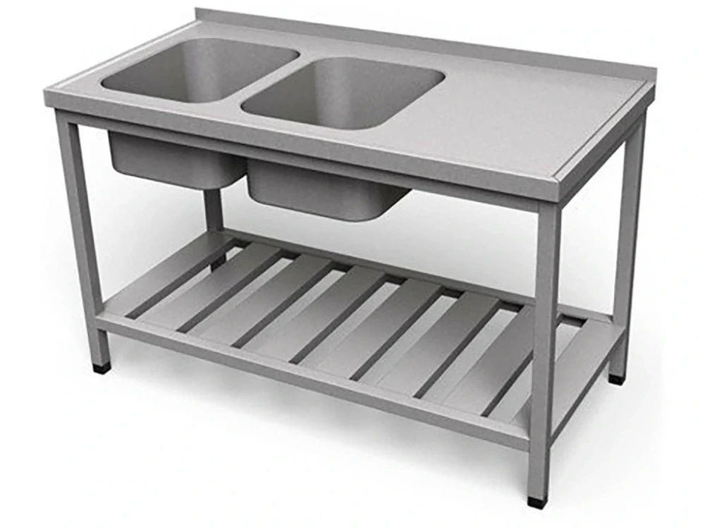 Nerezový umývací stôl s 2 drezmi a roštovou policou USR-2
